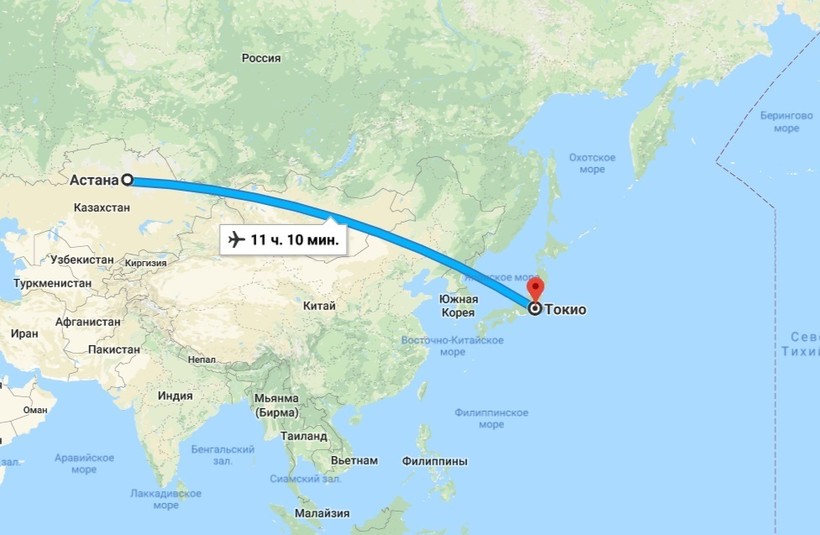 Нур-Султан (Астана) — Токио — маршрут на карте