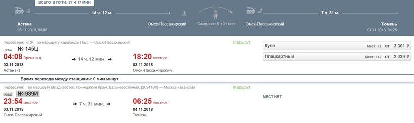 Из Омска можно было уехать на полчаса раньше, но на этот поезд билетов не было.