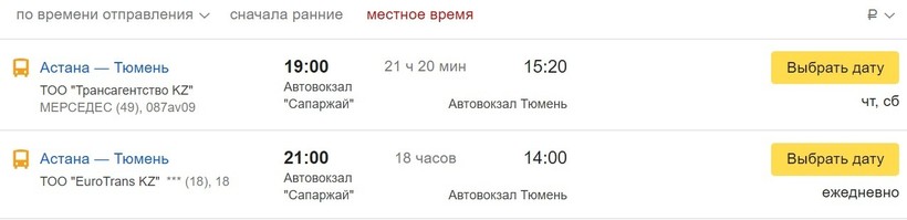 Поездка на автобусе обойдется в 2000 рублей (11000 тенге)