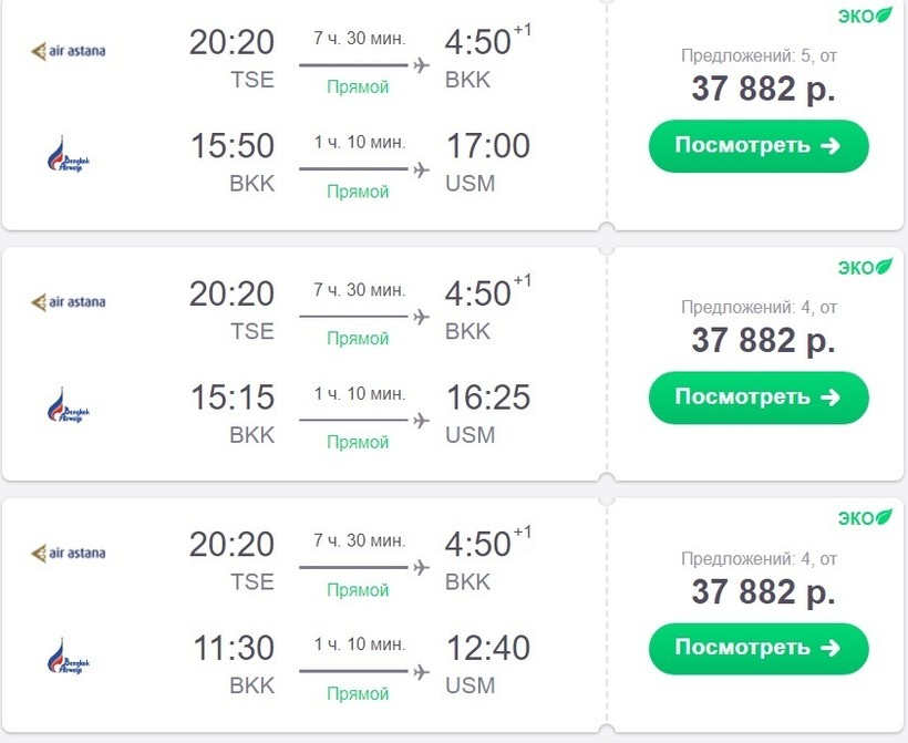 Прямые рейсы по маршруту Астана — Самуи не осуществляются. Можно долететь только с пересадкой. Ее лучше всего сделать именно в Бангкоке (столица Таиланда). Расскажу про этот вариант немного подробнее: