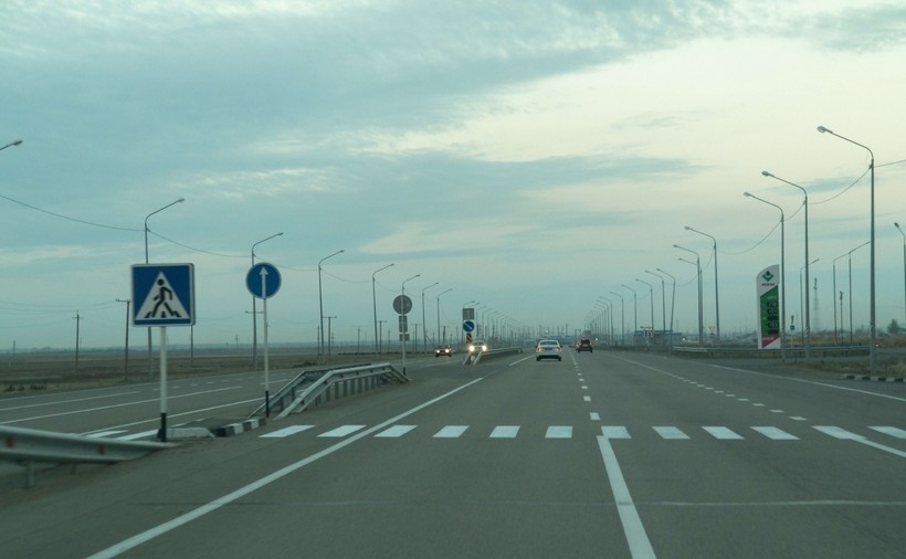Если говорить о дорогах в целом, то качество покрытия добротное. Было несколько отрезков с ямами и повреждениями, но это больше исключение, чем правило. Разметку видно хорошо, дорожные знаки в нужных местах есть. Трафик ниже среднего, инфраструктура тоже не очень хорошо развита, заправок немного, но время от времени мелькали.