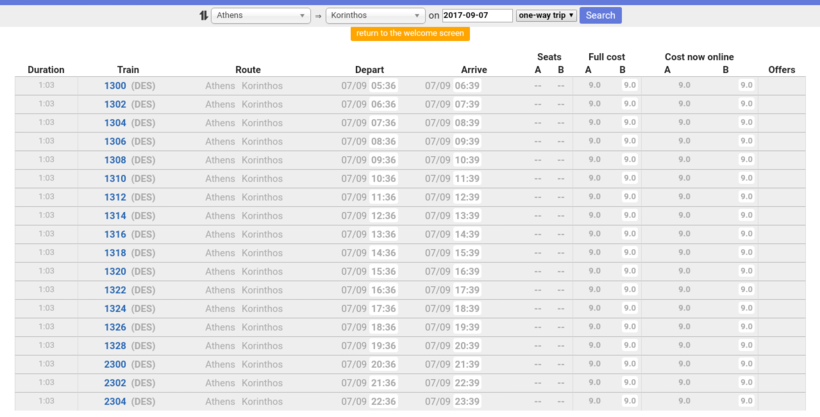 Доехать в Коринф можно и на поезде, если на север страны ездят экспрессы, то полуостров со столицей связывают электрички Proastiakos. Их расписание можно узнать на сайте железной дороги: