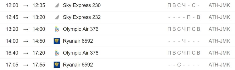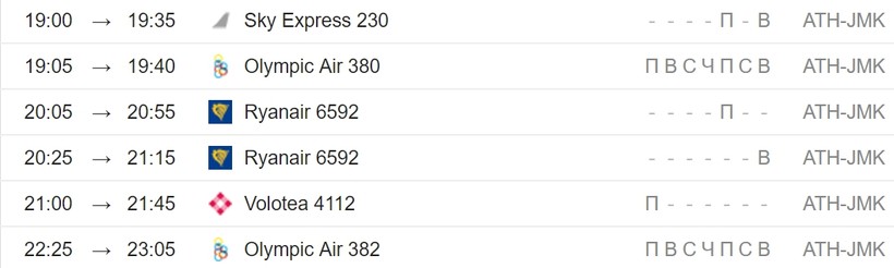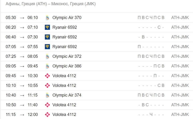 Ниже приведена информация о том, сколько часов вам потребуется, чтобы добраться от Афин до Миконоса, а также приведена примерная стоимость проезда (средняя цена билета) на том или ином виде транспорта.