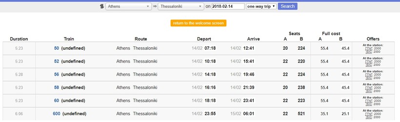 Подробно посмотреть график можно на сайте греческой железной дороги.