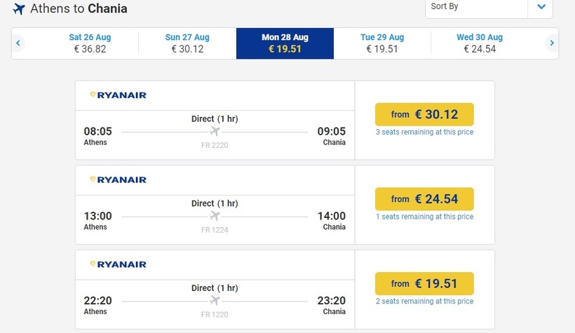 Покупать билеты можно и в аэропорту Афин. Но лучше всего пользоваться Интернетом. На помощь придут официальные веб ресурсы авиаперевозчиков — Ryanair, Olympic Air или онлайн сервис наподобие такого.