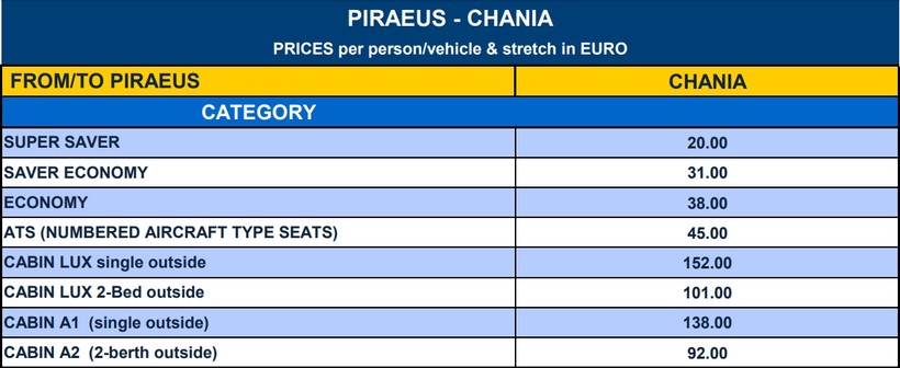 Количество паромов и точные часы их отправки можно уточнить перед поездкой в порту или просто посмотреть на сайте перевозчика. Добраться таким образом в Ханью можно за восемь с половиной (ночной рейс) или девять часов (утренний рейс).