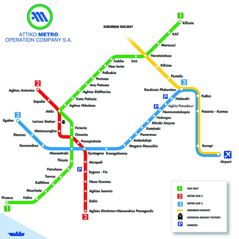 К порту из Афин можно доехать на поездах, что отправляются с главной железнодорожной станции города. Интервал между отправками — ориентировочно два часа.