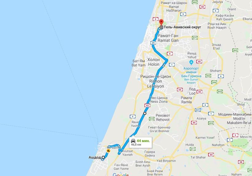 Расстояние от Ашдода до Тель-Авива