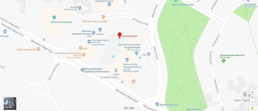 Итак, сначала нужно будет прийти на центральный автовокзал в Ашдоде. Располагается он вот тут, адрес: бул. Менахема Бегина, 1.