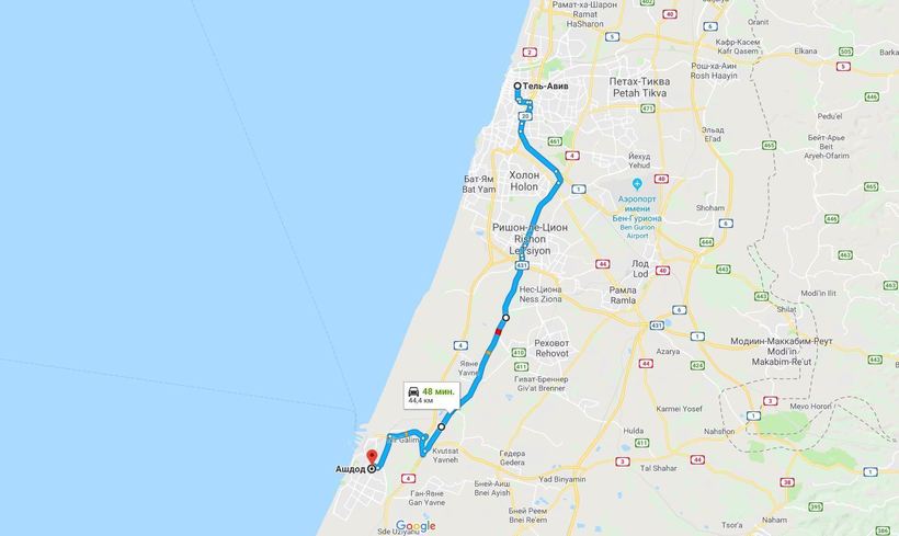 Тель-Авив — Ашдод — маршрут на карте