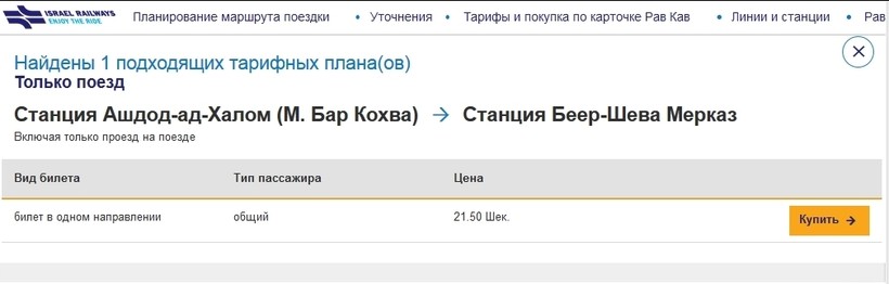 Стоимость билета до Беэр-Шевы 21 ILS (5€).