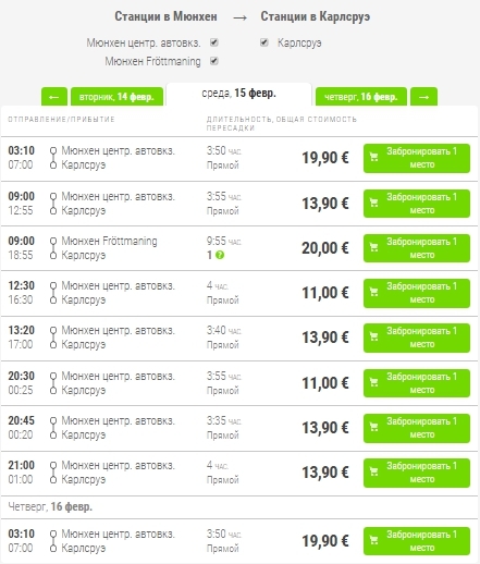 Цена билета из Мюнхена в Карлсруэ начинается от 11 евро.
