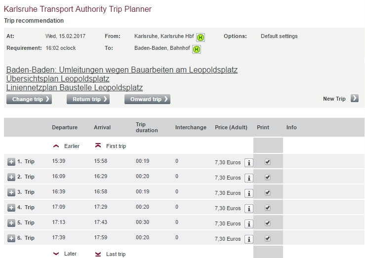 Билет на пригородный поезд до Баден-Бадена стоит 7,3 евро.