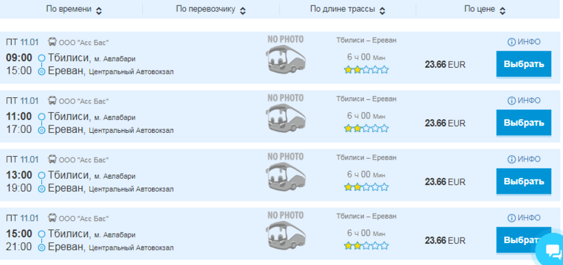 Можно приобрести билет на автобус из Баку до Тбилиси на сайте Бакинского международного автовокзала, выбрав время и дату поездки. Из Тбилиси до Еревана на автовокзале Ортачала.