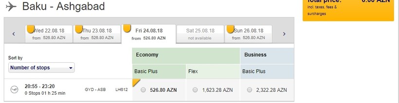 Ниже приведена информация о том, сколько часов вам потребуется, чтобы добраться от Баку до Ашхабада, а также приведена примерная стоимость проезда (средняя цена билета) на том или ином виде транспорта.