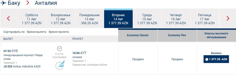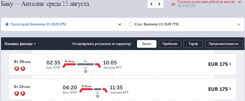 Перелет из Баку в Анталию обойдется где-то от 356 манат (210 долларов).