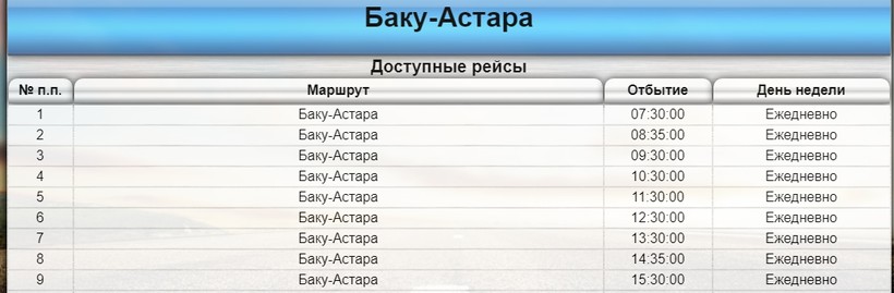 Доступных рейсов больше десяти, более подробно график можно посмотреть на сайте Бакинского автовокзала.
