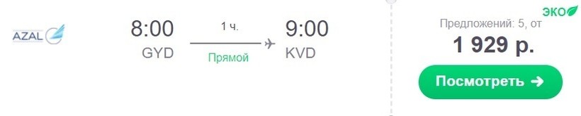 Билет до аэропорта Гянджи от 50 манатов (от 1930 рублей).