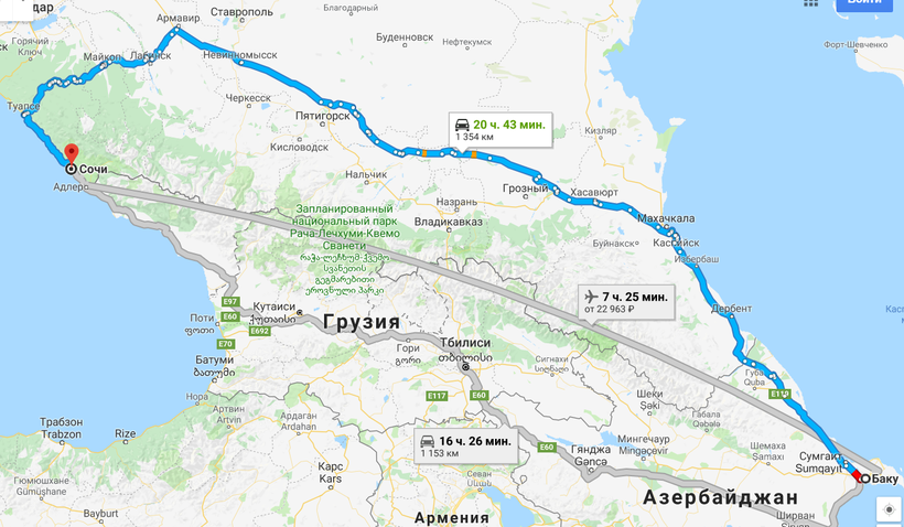 Сопоставив все варианты поездок из Баку в Сочи, наиболее подходящий для меня вариант — путешествие на автомобиле. Это не самый быстрый, но наиболее выгодный способ добраться из столицы Азербайджана в Сочи.