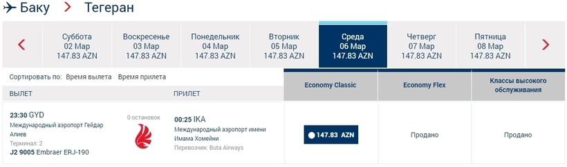 Иногда можно встретить рейс и от иранской компании Mahan Air.