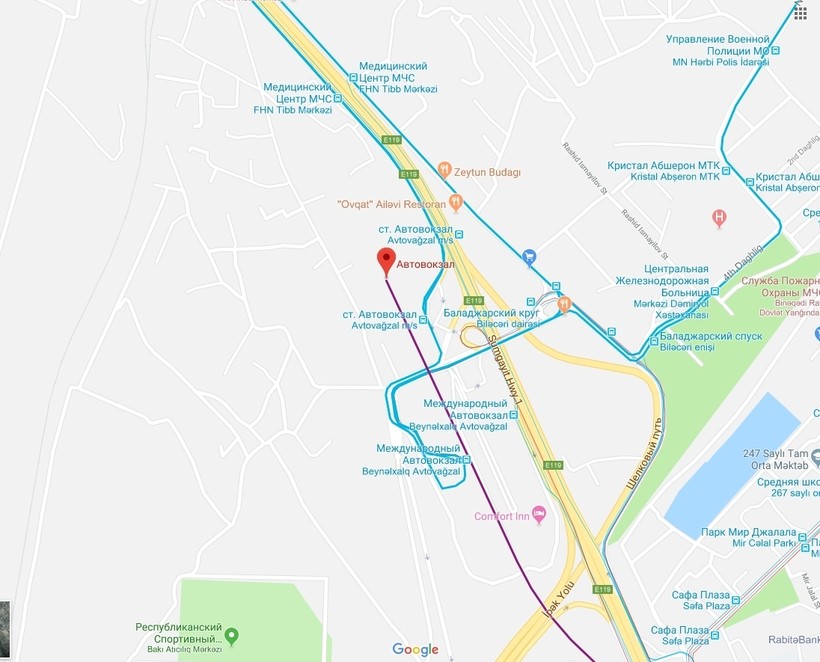- автобусы и маршрутки, что привезут к станции метро Shahed (красная линия) и других районов города, ехать около получаса, за билет придется выложить около 2 манат (1 доллар США).