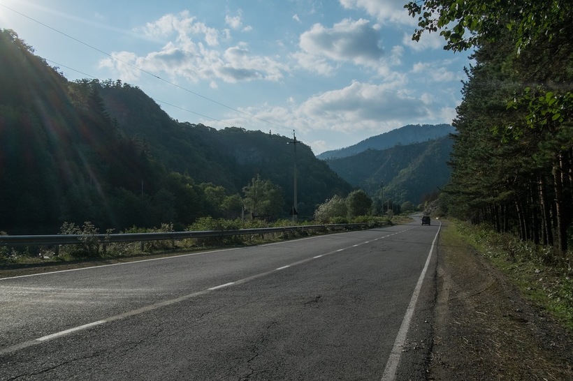 Дорога до Хашури просто отличная, двухполосная трасса с ограничением 120 км, да и дальнейшая дорога до Боржоми неплохая, хоть и однополосная. Дорога от Боржоми до Бакуриани также вполне приличная и радует видами.