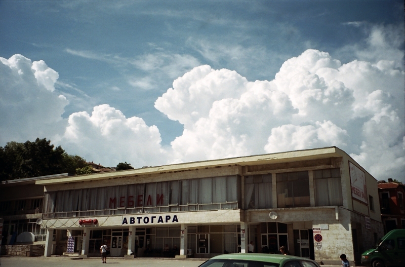 С покупками через интернет в Болгарии такая же печаль-беда, как и в России. На автобус купить электронный билет не получится. Поэтому топайте в кассу, расположенную в двух шагах от автобусной станции. Видите здание на фотографии? Вот вам туда, в «автогара»)