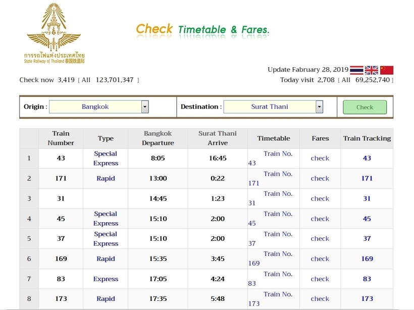 От Бангкока до Сураттхани идет с десяток поездов ежедневно.