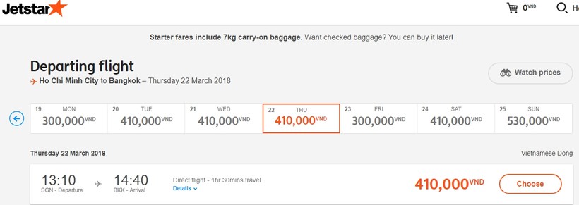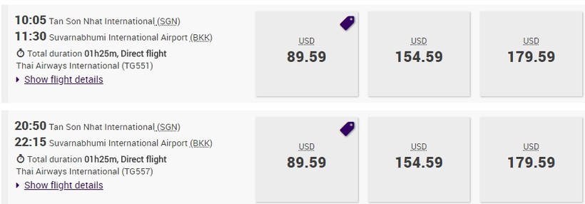С аэропорта Хошимина в Бангкок летают самолеты от различных авиакомпаний, в частности, Jetstar, Vietnam Airlines, Vietjet, Thai Airways, Nok Air, Air Asia.