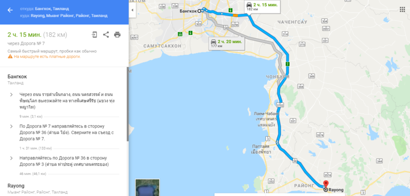 Бангкок — Районг — маршрут на карте