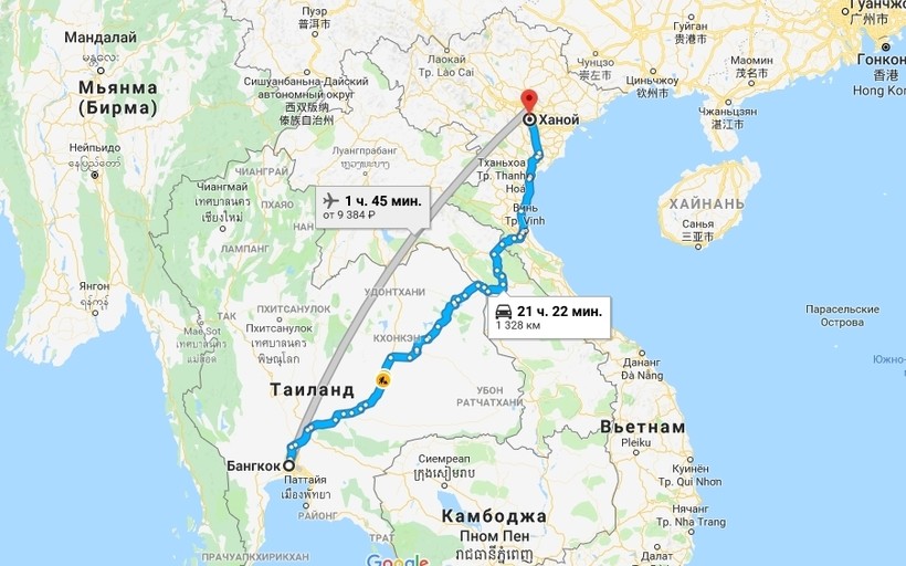 Ниже приведена информация о том, сколько часов вам потребуется, чтобы добраться от Бангкока до Ханоя, а также приведена примерная стоимость проезда (средняя цена билета) на том или ином виде транспорта.