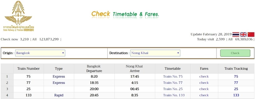 Доступные рейсы можно посмотреть на сайте железной дороги Таиланда.