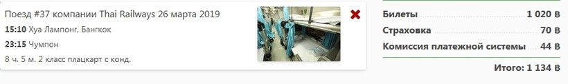 Плацкартное место — 1134 таиландских бата (31,65 €).