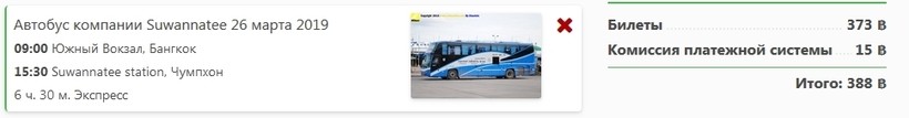 Билеты на автобусы Suwannatee стоят — 388 таиландских батов (11 €).