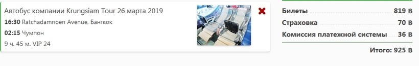 Билеты на автобусы Krungsiam Tour — 925 таиландских батов (25,80 €).