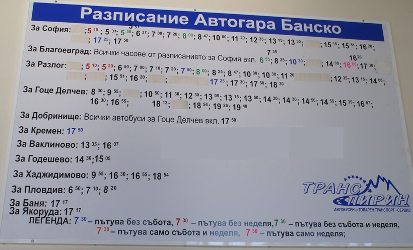 Из расписания понятно, что автобусы ездят регулярно, правда, конечная не в Банско. Кроме того, некоторые рейсы не ходят по выходным, могут быть и другие изменения, но не существенные. Автобусы отправляются от автостанции (Автогара Банско), она находится тут: