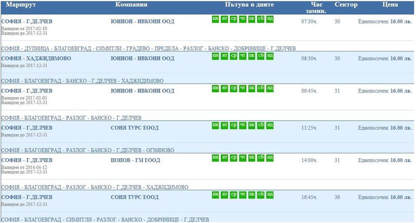 Билет в одну сторону, не зависимо от фирмы-перевозчика и маршрута, стоит 16 левов (чуть больше 8 евро).