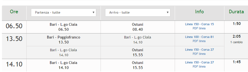 При желании добраться в Остуни можно и на автобусе. Между городами курсирует несколько автобусов компании FSE. Они выезжают с двух автостанций (Poggiofranco и L.go Ciaia), поэтому будьте внимательны при покупке билета. Мне кажется, путешествие на автобусе не слишком удобным по нескольким причинам. Во-первых, это расписание. Автобусов мало, а потому нет возможности уехать в любой момент. Во-вторых, это длительность поездки. Так как автобус останавливается на каждом углу, то поездка занимает почти два часа. Собственно, по этим причинам я не советую рассматривать автобус как способ добраться в Остуни.