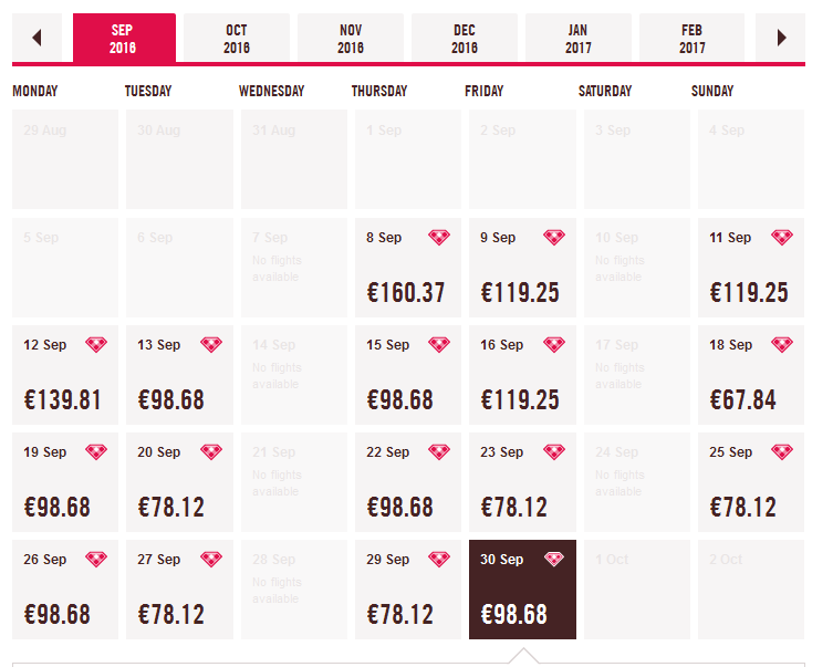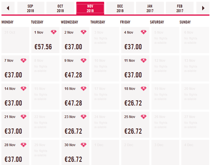 Стоимость билета очень сильно зависит от того, за сколько дней до вылета вы его приобретаете. Например, если покупать билет за пару месяцев, то можно найти предложения меньше, чем за 30 евро.