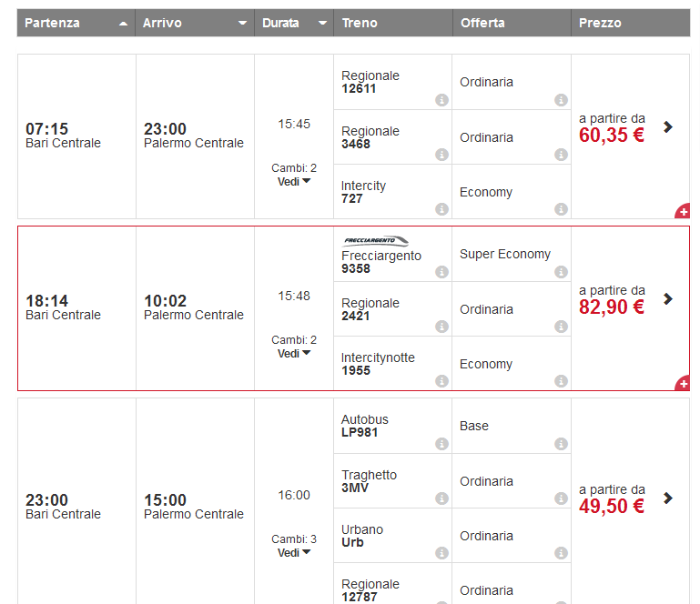 Из Палермо в Бари реально добраться на поезде, но делать придется минимум две пересадки. Кроме того, ни моста, ни тоннеля, которые соединяли бы остров и материк нет, а процесс паромной переправы занимает довольно много времени.
