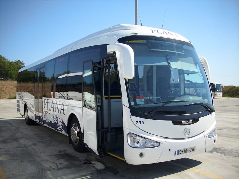 Второй вариант предполагает использование автобусов компании Empresa Plana. Эти автобусы едут в точку, располагающуюся по адресу Passeig de Gràcia, 36, 08007 Barcelona . Отправляются автобусы 6 раз в день: в 04:00, потом в 07:00, потом в 08:50, 11:00, в 12:00, в 15:00 и в 17:30. В пути нужно будет провести примерно час и двадцать минут. Автобусы компании Empresa Plana выглядят вот так: