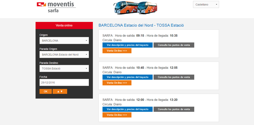 Билеты на электричку можно купить в кассах вокзала, в специальных терминалах там же, или заказать на официальном сайте Испанских железных дорого – RENFE, там же можно посмотреть подробное расписание. Билеты на автобус можно купить прямо у водителя. Если вы никогда раньше не пользовались испанскими железными дорогами и чувствуете себя в этом вопросе неуверенно, то можно заранее познакомиться со всеми особенностями, прочитав пару статей в интернете, вроде вот этой.