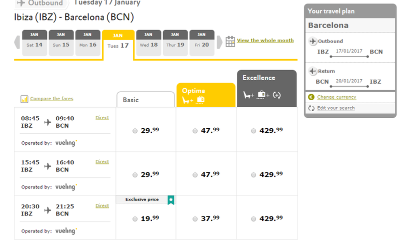 Так как воздушный транспорт является самым популярным способом добраться из Ибицы в Барселону, то о билетах нужно заранее заботиться. Через некоторое время к запланированному путешествию можно купить электронные билеты на официальных сайтах авиаперевозчиков - Vueling и Ryanair.