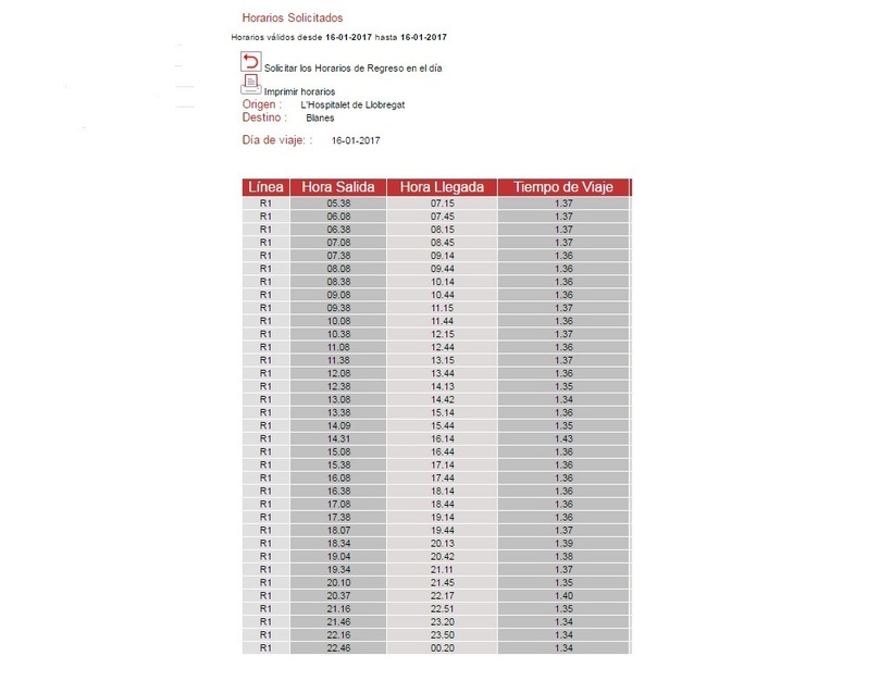 От конечной станции поезд едет в Бланес полтора часа, из них 20 минут по Барселоне. Эти поезда считаются региональными или пригородными, направление называется R1. Расписание движения можно посмотреть на сайте испанской железной дороги. Поезда ездят очень часто, приблизительно с 6 утра и до 11 вечера.