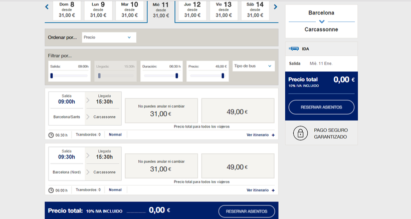 Компания ALSA предлагает два вида билета: обычный за 49 евро и невозвратный за 31 евро. Если вы уверены в будущей поездке, то можно не переплачивать и приобрести более дешевый билет.