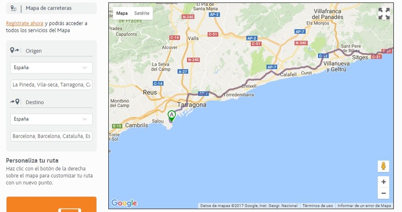 Выбирая маршрут в Барселону лучше остановиться на платной трассе. Да, придется заплатить практически 14 евро, но зато проедете с ветерком. Стоимость проезда можно узнать тут. Для этого введите названия населенных пунктов из La Pineda, Vila-seca, Tarragona, Cataluña, España в Barcelona, Barcelona, Cataluña, España: