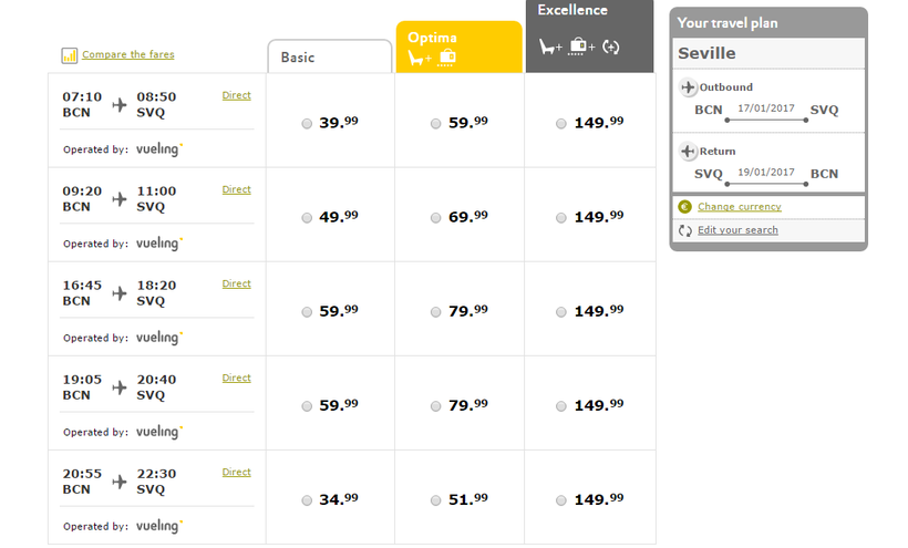 Когда я искала для себя транспортные средства, обратила внимание на авиакомпанию Vueling, которая обслуживает такой маршрут.