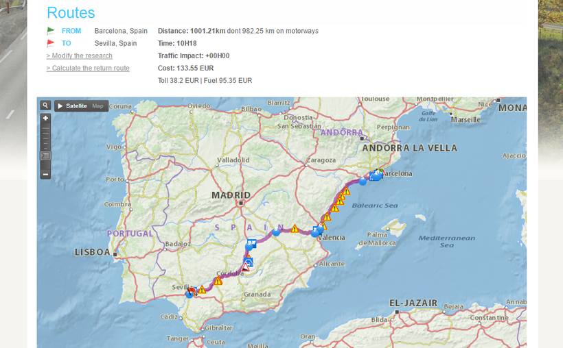 Хочу отметить, что в Испании за пользование автострадами предусмотрена оплата. За всю поездку плюс расходы на бензин вам придется заплатить 133 евро (за сами дороги около 40 евро).