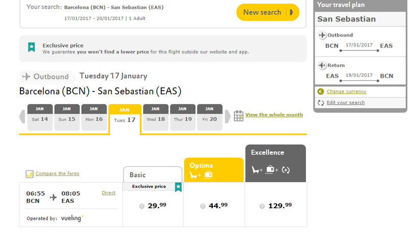 Между Барселоной и Сан Себастьяном летают самолеты от компании Vueling. Таким транспортом можно добраться нужного места всего за час.