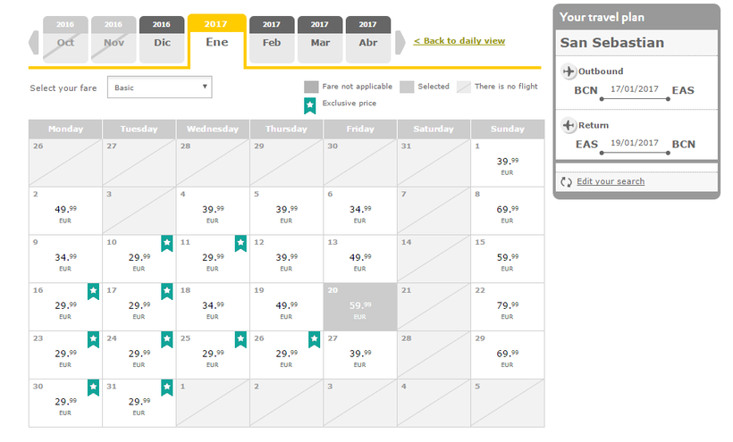Так как авиарейс только один, поэтому понятно, что авиабилеты разлетаются как "горячие пирожки". Покупать стоит заранее на сайте Vueling. Или же можно воспользоваться другими поисковиками. Посмотреть наличие авиабилетов и купить их можно, например, здесь.